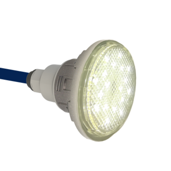 Ce projecteur de piscine complet, se visse dans des traversées de paroi 1.5 pouces et existe dans 3 couleurs d'éclairage : blanc froid, blanc chaud et RGB+W (couleurs + blanc).