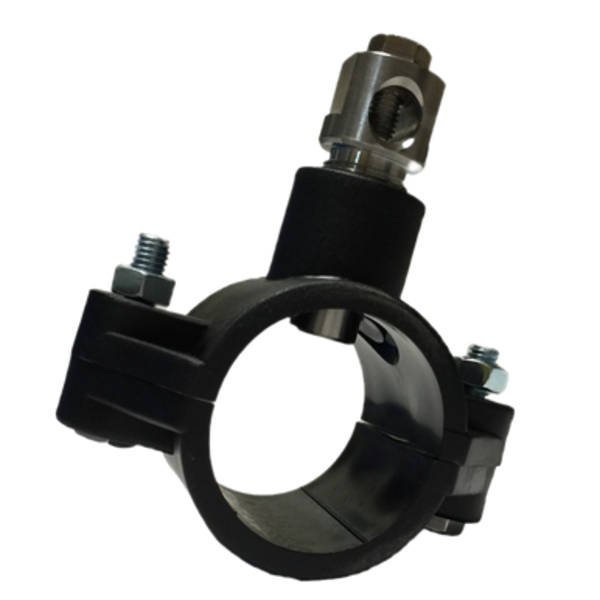 ✔️ Il suffit de fixer le collier de prise en charge sur une canalisation PVC, puis de relier la borne de mise à la terre à un piquet de terre.